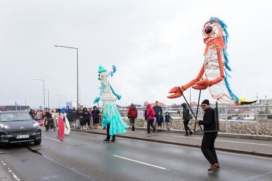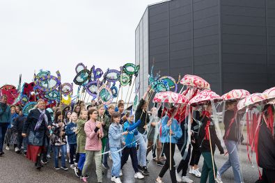 Havets beskyttere havmanden og havfruen gik nemlig forrest for at beskytte "Naturens Rige". Dyr fra hav, land og luft fulgte efter, og der var drømmefangere med til at indfange alt det, som ødelægger naturen. Børnene har selv i foråret været med til at lave de flotte figurer."